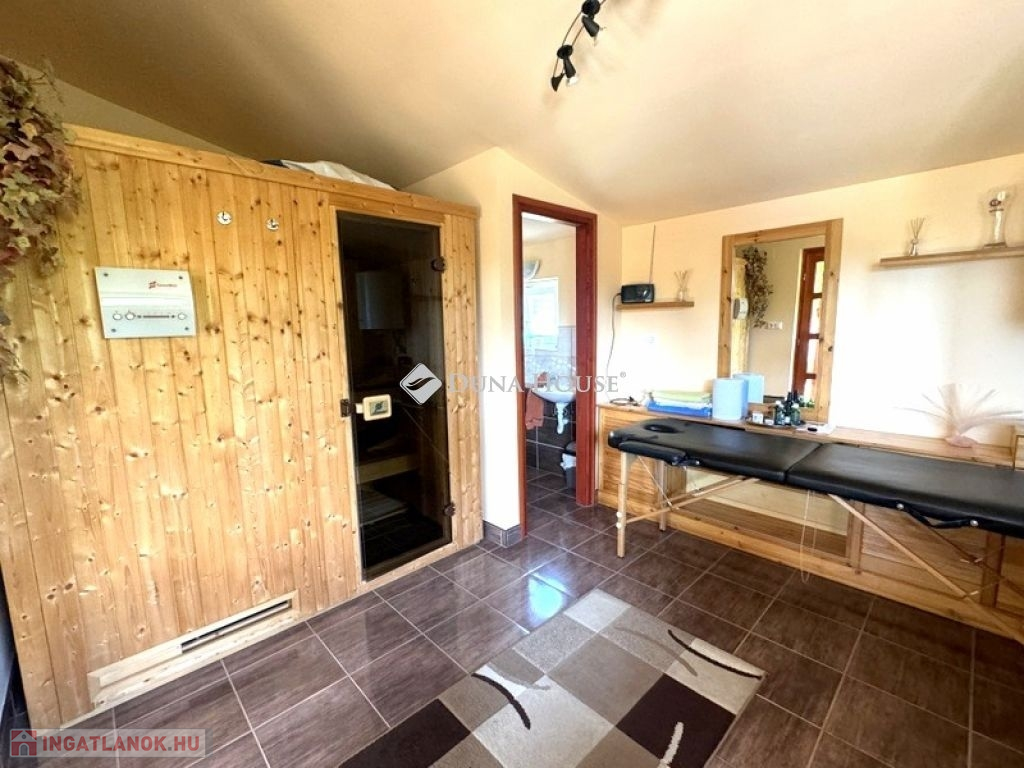 A ház további különlegessége a jól felszerelt klimatizált wellness részleg, amely a luxus pihenés otthoni szentélyévé válik.