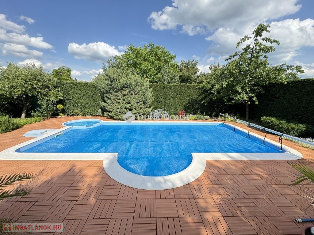 A parkosított udvarban található jakuzzival felszerelt, 1,5 méter mély és 4x8 méteres medence tökéletes a hűsölésre vagy egy esti fürdőzésre.