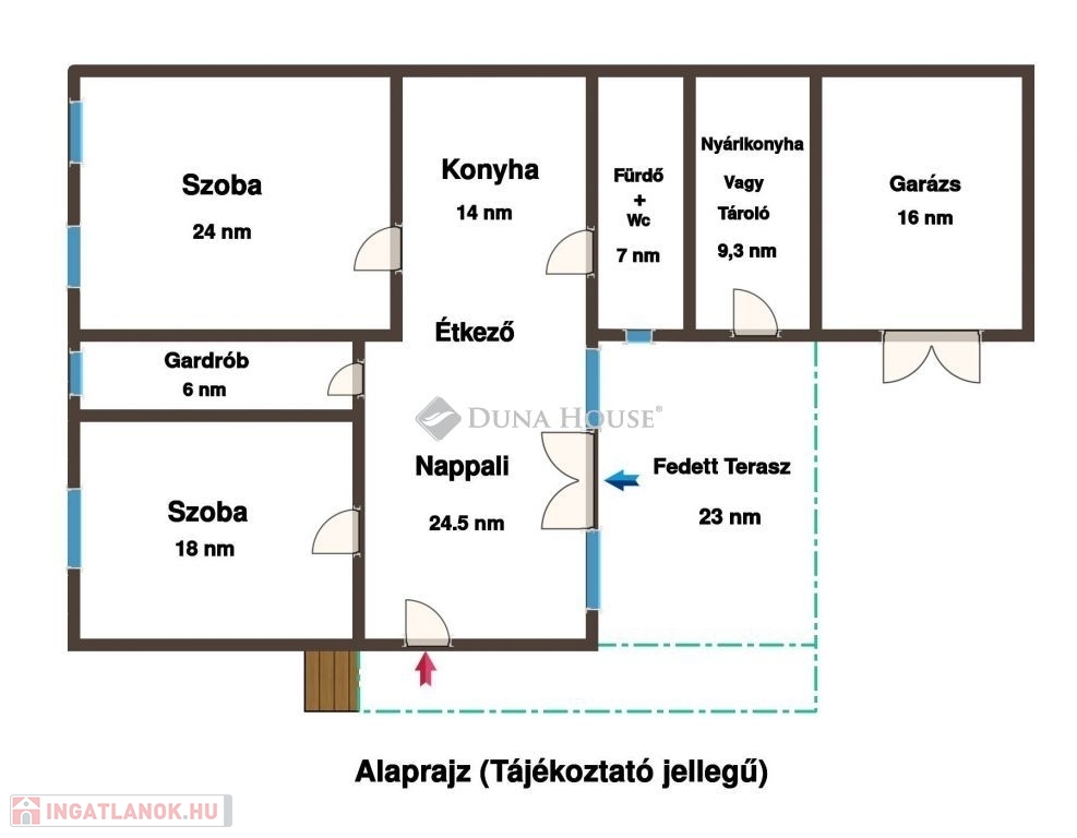 - fedett terasz (23 nm);