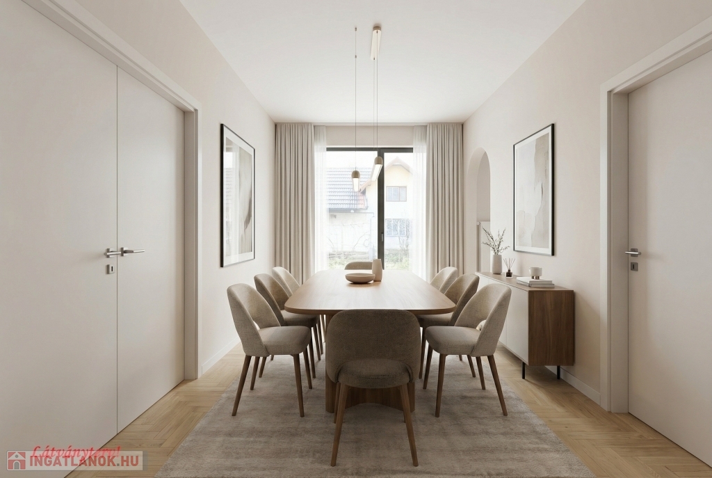 A házhoz tartozó 140 nm-es melléképület igazi plusz: lehet belőle home office, műhely, stúdió vagy akár egy induló vállalkozás bázisa úgy, hogy a lakótér megmarad a családnak.